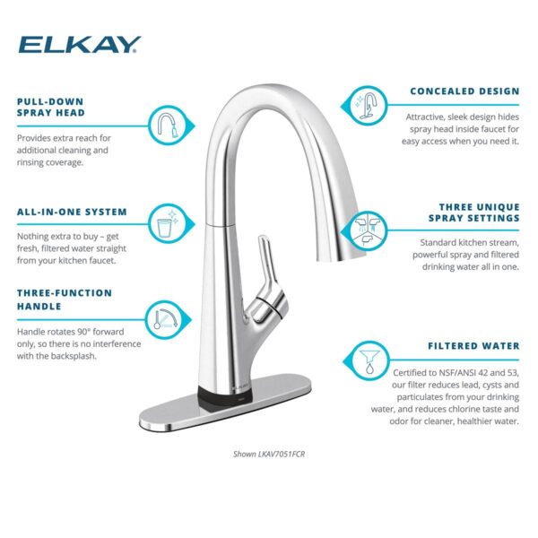 With its 2-in-1 design, you’ll have access to both standard hot/cold water and high-quality filtered water. The three-function lever handle provides an attractive look while being easy to clean and sanitize to avoid contamination when encountering germs and bacteria. Plus, it allows you to switch between hot, cold, and filtered water with ease. This faucet is made with a durable brass material with a lustrous steel finish that is easy to clean.